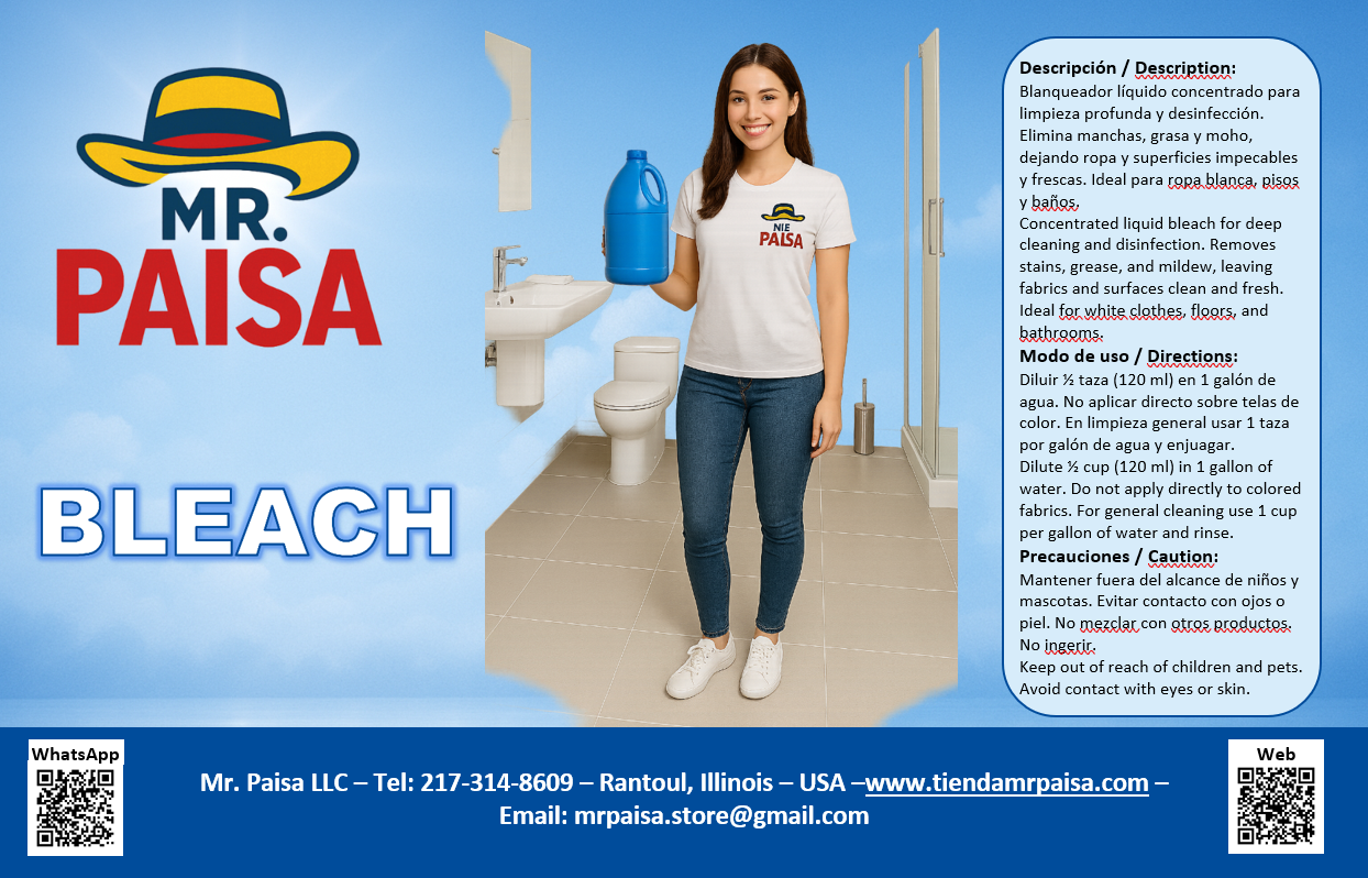 ✨ Inspirado en Clorox®, reconocido por su eficacia contra gérmenes, bacterias y malos olores.